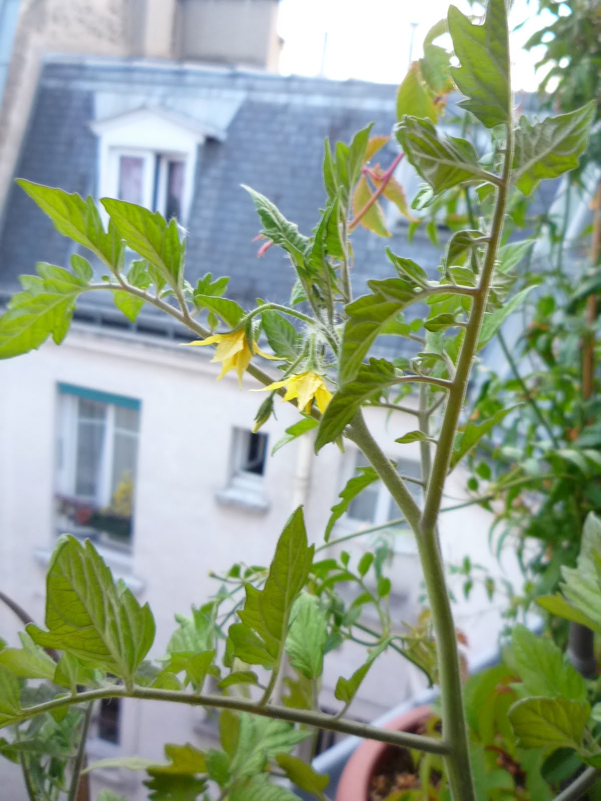 Alors, je me suis rabattue sur des plants de tomates, et là, ça a l'air d'être mieux parti... regardez moi ça :